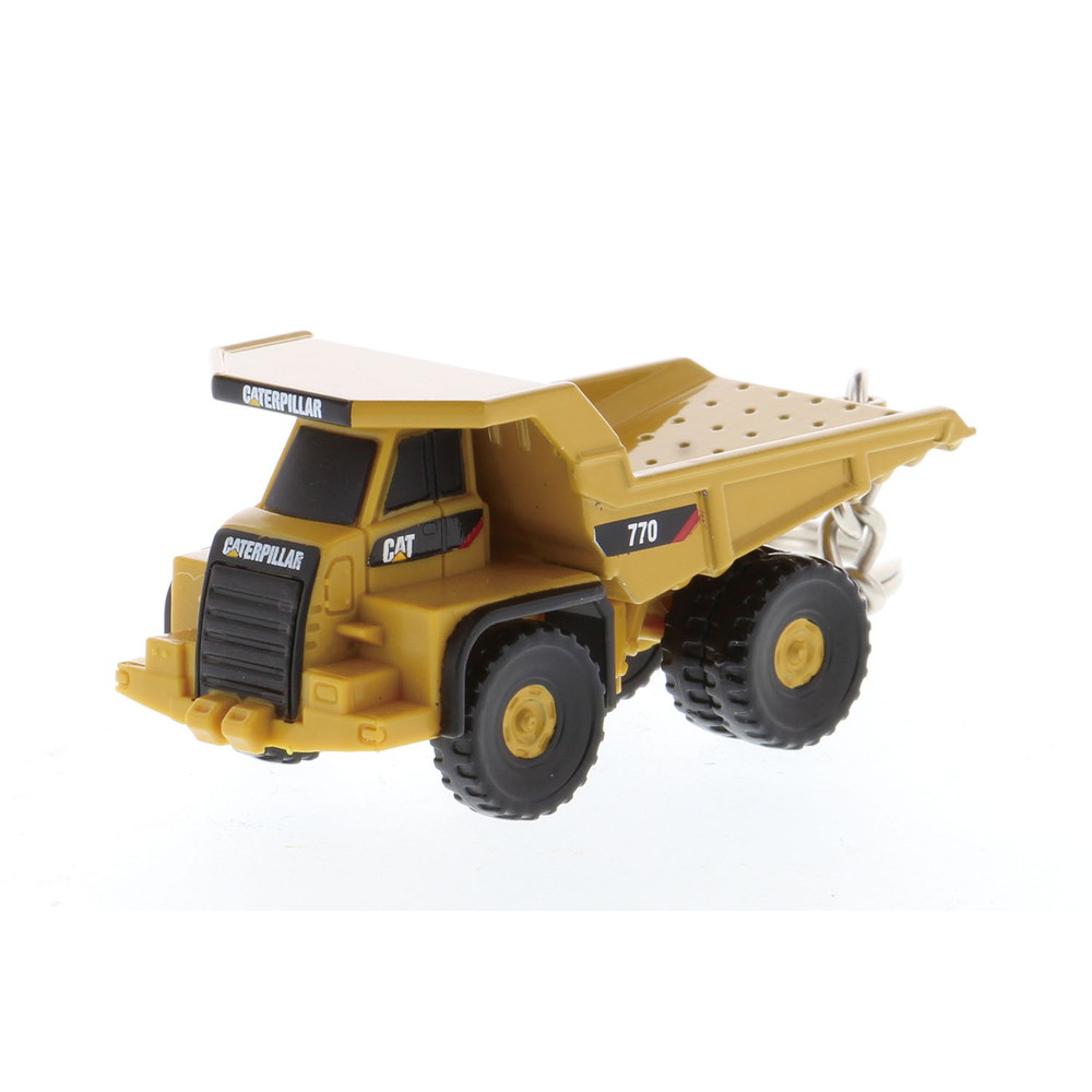 世界的な建設機械メーカー、キャタピラー社のCAT 770 オフハイウェイトラックを再現したミニモデルが付いたキーホルダーです。