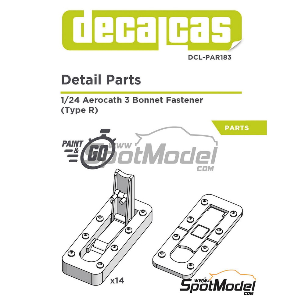 3Dプリントパーツでディテールを詳細に再現。セットには開いたラッチのパーツと閉じた状態のラッチのパーツがそれぞれ14個づつ入っています。また、このパーツをモデルに取り付けるときに便利な開ける穴を加工するときのテンプレートも用意されています。
