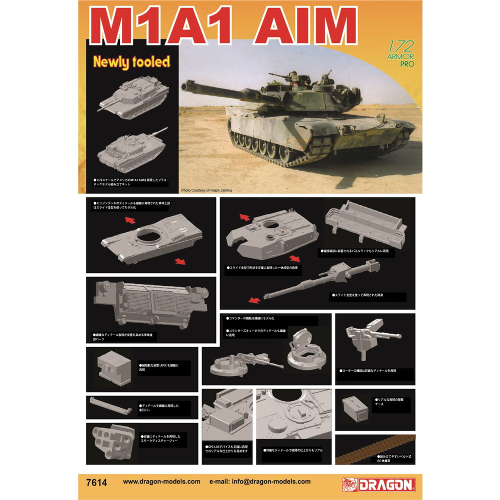 2003年にイラクでも活動したアメリカ軍の主力戦車、M1エイブラムスのM1A1 AIMを1/72スケールで再現したプラスチックモデル組み立てキットです。