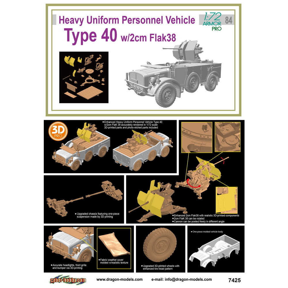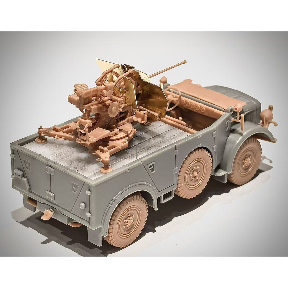 ●第二次大戦のドイツ軍大型軍用車、重統制型軍用車 タイプ40 2cm対空機関砲 Flak38 搭載型を1/72スケールで再現