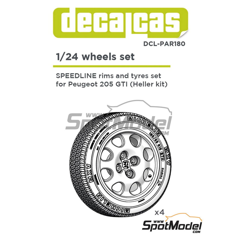 このセットは1/24スケールのエレールのプジョー205GTIのキット(HE82705J)に対応したホイールリムとタイヤを再現した3Dプリントパーツのセットです。