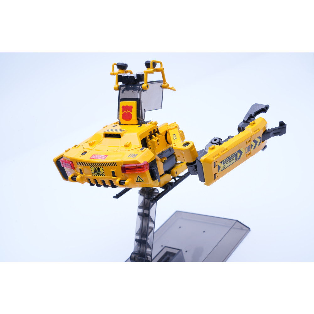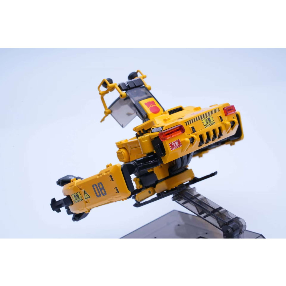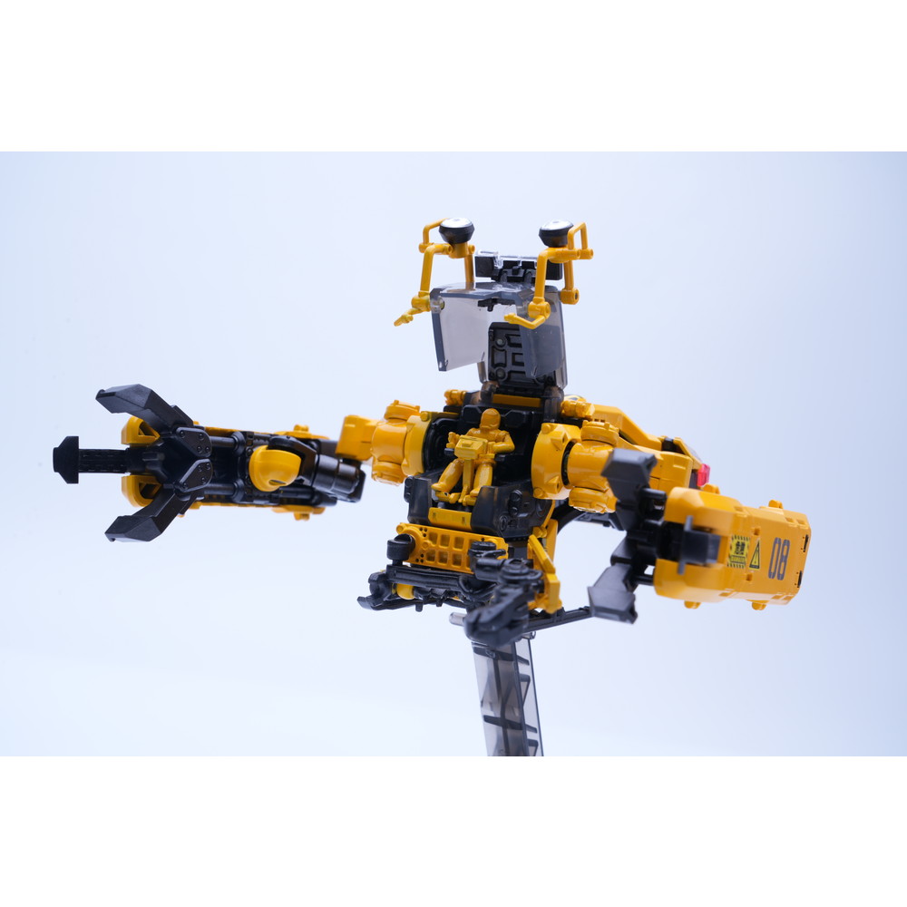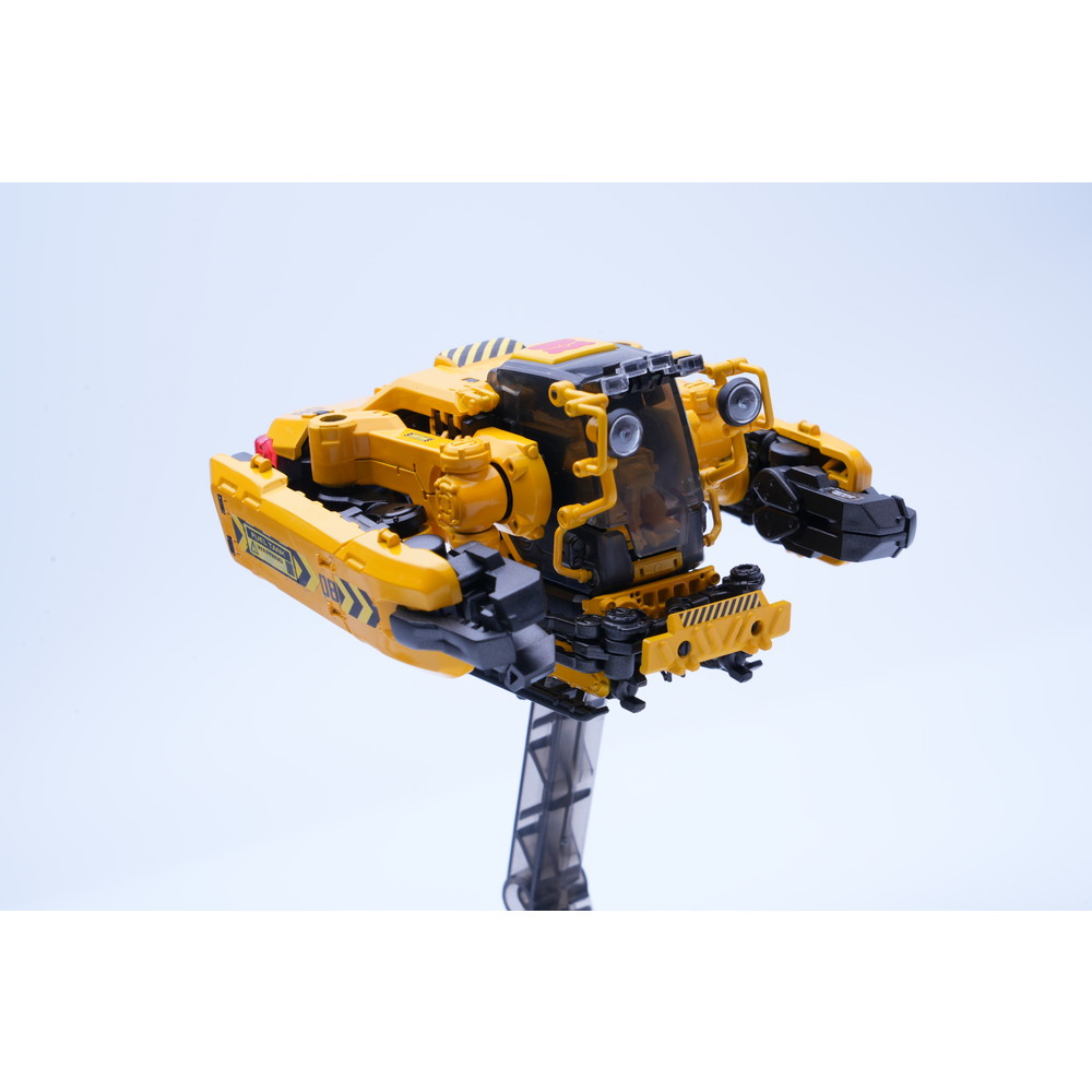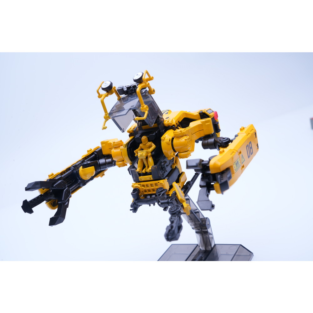 建築機械や工事車両などのイメージに合わせてイエローとブラックのパーツで構成。各関節は完成後も可動、着脱が楽しめます。
