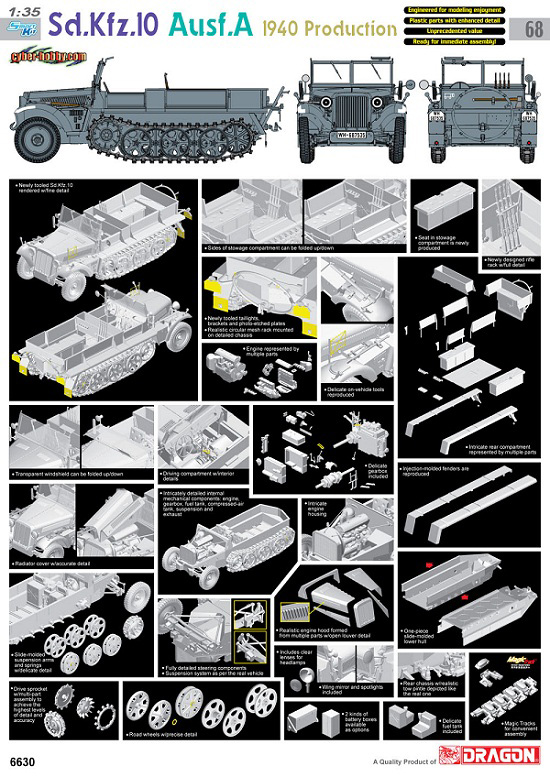モデルはもっとも基本的な兵員輸送車タイプのSd.Kfz.10 1tハーフトラックA型を1/35スケールで再現しています。