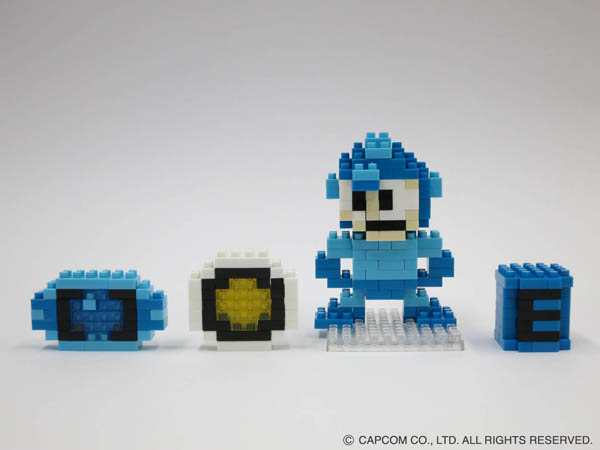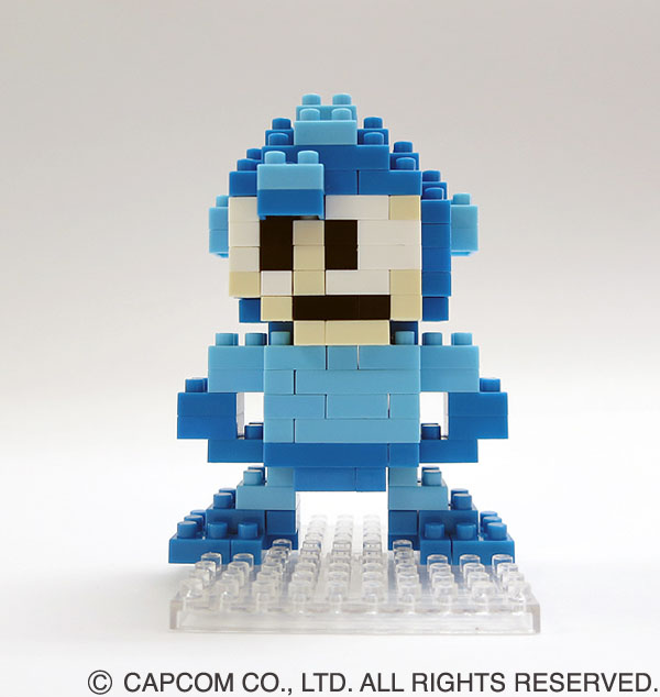 そして今回、人気の両タイトルのコラボレーションが実現。1987年の第1作に登場したいわゆる「初代」ロックマンの登場キャラクターをナノブロックで再現します。最少部品がわずか4ミリほどの極小ブロックで組み上げたロックマンは、まさに80年代のゲーム画面のイメージそのまま。ゲームキャラクターを画面イメージのままブロックで立体化するというありそうでなかったアプローチで、ゲームファンから模型ファンまで幅広いユーザー層にアピールします。