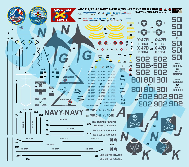 X-47B is the one of the Unmanned Air Vechicles. This air vechicle still has being developed for an autonomous carrier operations including launch and recovery as well as attacking the targets by laser wave and high-power mictowave. The X-47B Unmanned Combat Air System Demonstrator (UCAS-D) completed its first flight on Feb. 4, 2011 at the Edwards AB. The first carrier launches and recoveries of the X-47B are planned for demonstration in 2013.